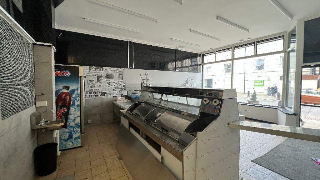 Prime location ,well established Fish & Chip shop, with separate accommodation included (three plus bedrooms to flat, living room, kitchen, bathrooms).