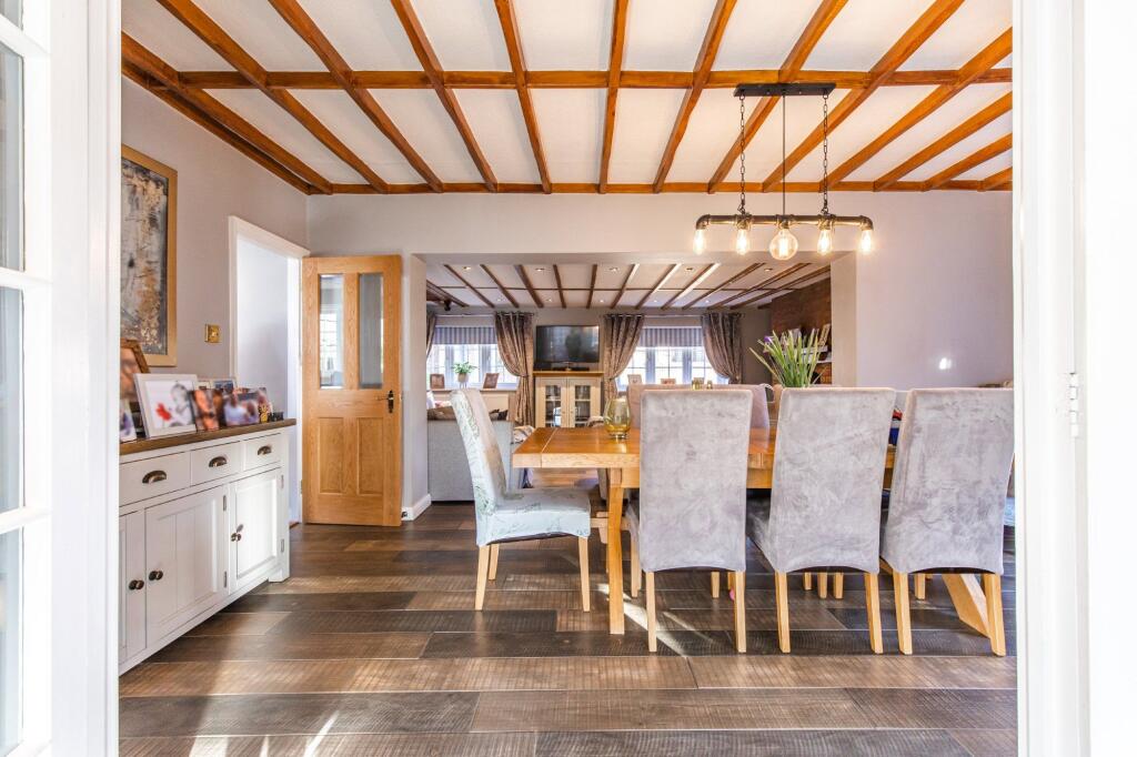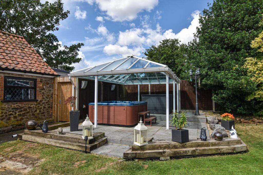 Hive Cottage, located on Lynn Road in East Winch, Norfolk, presents as a well-maintained and stylish six-bedroom property. The house has undergone a contemporary renovation, showcasing a seamless blend of modern comforts and potentially some period features. The interior is tastefully decorated, with high-quality finishes throughout, featuring modern fixtures, updated kitchen and bathrooms and ample living space. The property features multiple living areas, a modern kitchen, and six bedrooms, making it suitable for a large family or those seeking ample living space. Outdoor space includes a substantial garden, decking, patio, a hot tub enclosure and a generally landscaped yard. The area offers a good balance between rural living and access to nearby amenities and schools. The absence of detailed information on the property’s age, specifics of its construction and the lack of nearby comparable properties in terms of square footage makes conclusive statements difficult. However, based on the provided photos and limited data, Hive Cottage seems to be a reasonably priced property in good condition, which may attract a broad range of potential buyers seeking a spacious family home in a relatively quiet, rural location.