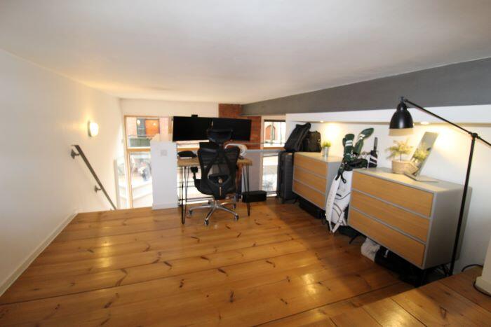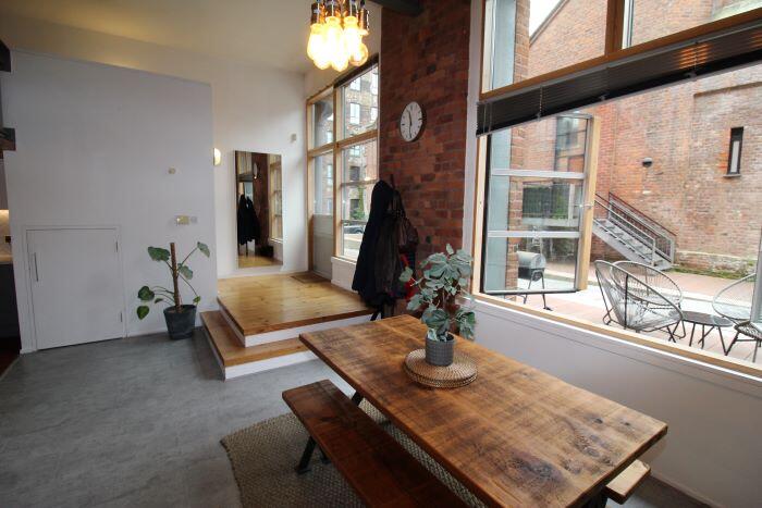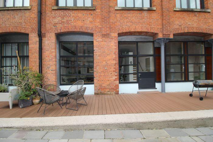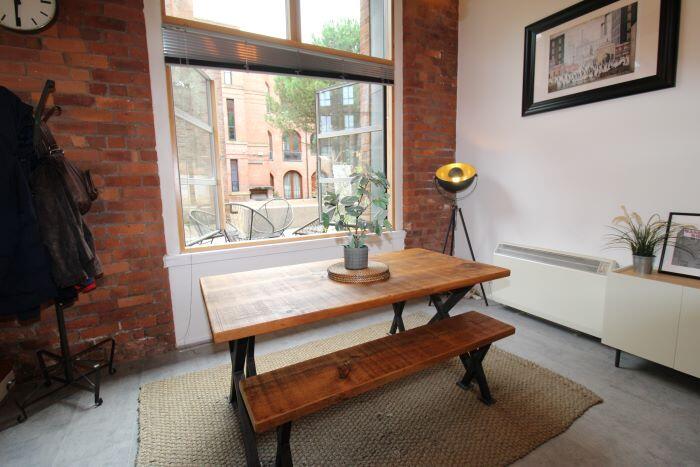 This fully furnished one-bedroom duplex in Britannia Mills, Castlefield, boasts original features, 18ft ceilings, large windows, and a private decking area. It offers a modern open-plan living space, mezzanine bedroom with office, stylish bathroom, secure parking, and residents' gym. Ideally located