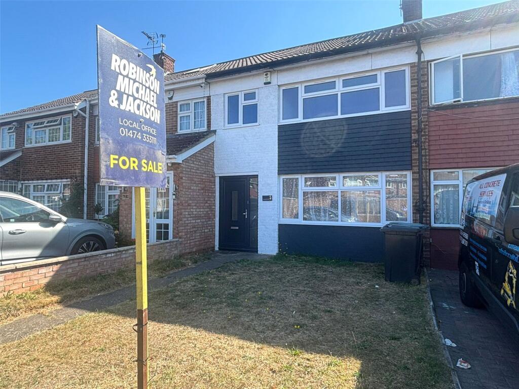 The property is a 3-bedroom terraced house in Northfleet, Kent. It is located near schools and transportation links. The property is in fair condition and would benefit from modernisation. The property includes a rear garden. The property is priced below the average price per sqft for the area.