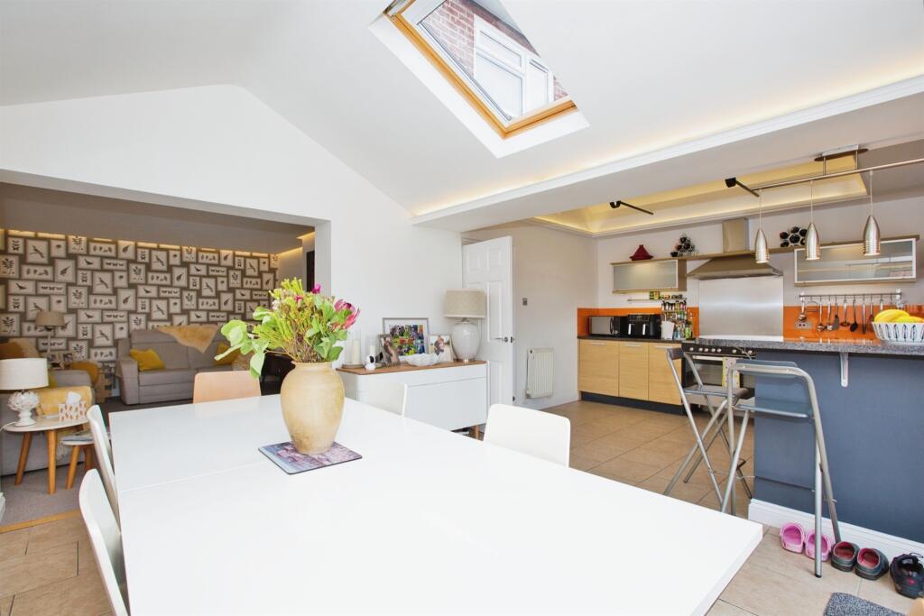 An extremely well presented three bedroom semi-detached house with larger than first expected extended accommodation including a super kitchen/diner. Outside there is a large enclosed rear garden with useful workshops and driveway parking.