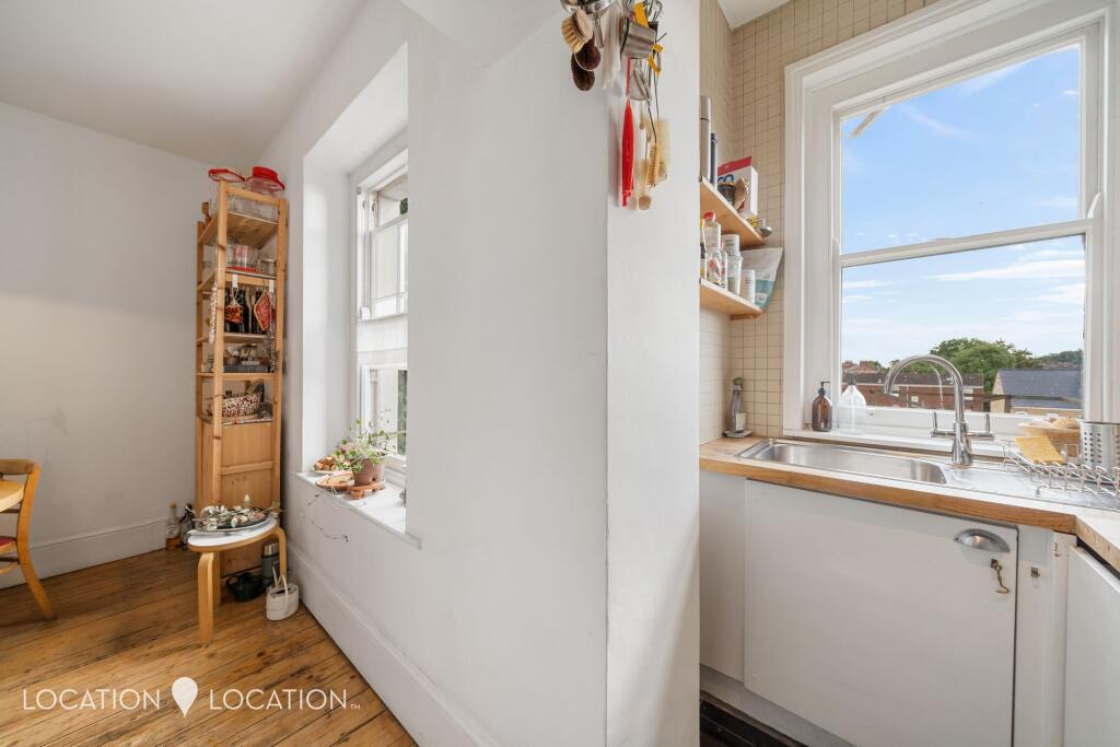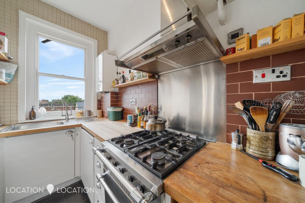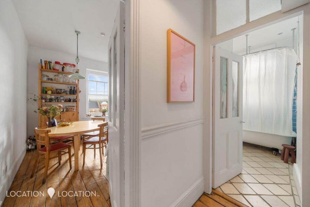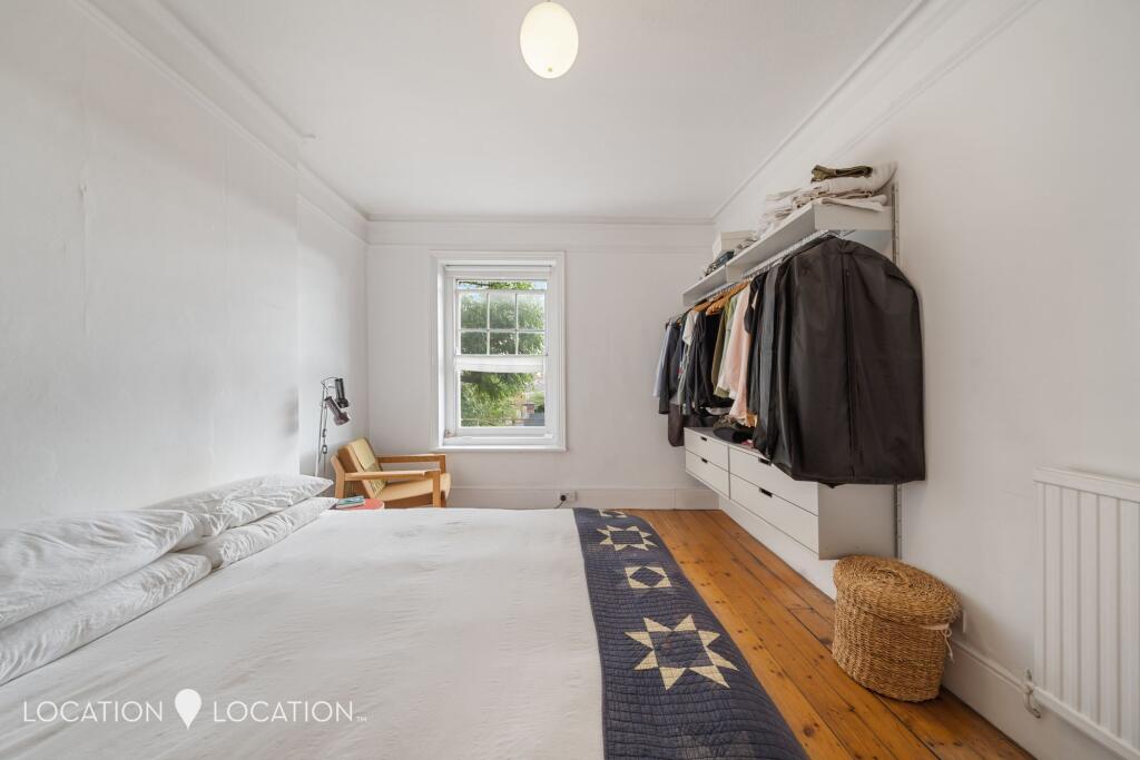 This is a two-bedroom flat in Clapton Terrace, Hackney, London. The property offers 915 sqft of living space. While the flat retains some period features and benefits from its location, it requires some modernisation, particularly in the bathroom and kitchen. The asking price of £650,000 appears reasonable given the square footage and location, especially when factoring in the potential for value addition through renovations. The flat is located close to schools and transportation links.