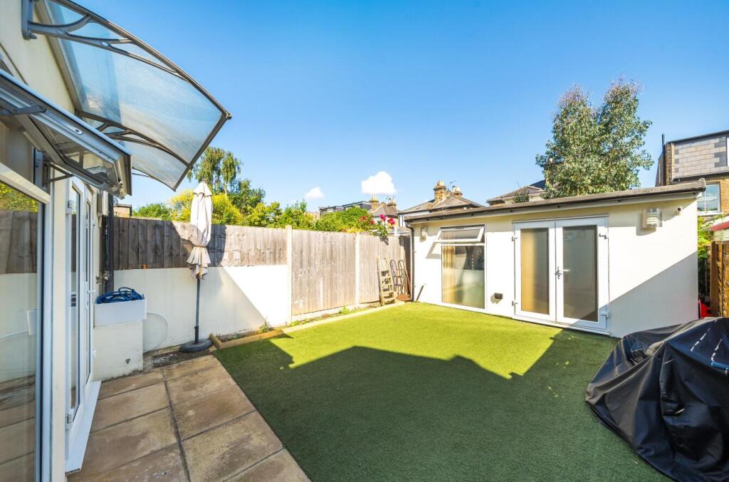This property is a 4-bedroom, 2-bathroom end of terrace house located in Kingston Upon Thames. The property benefits from a modern extension and has been recently renovated to a high standard. The kitchen and bathrooms are modern and well-equipped. There is a good-sized garden with artificial turf and a separate studio/office space. The location is excellent, with easy access to Kingston town centre, good schools, and transport links. The list price is slightly above the average for the area, but given the size, condition, and location, it is within a reasonable range.