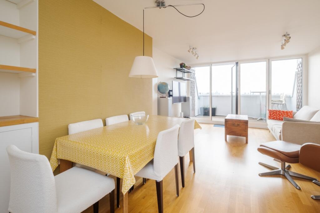 A stylish and well maintained two double bedroom, two bathroom, split level apartment boasting its own private decked terrace with sweeping views across London, as well as access to an expansive communal garden.