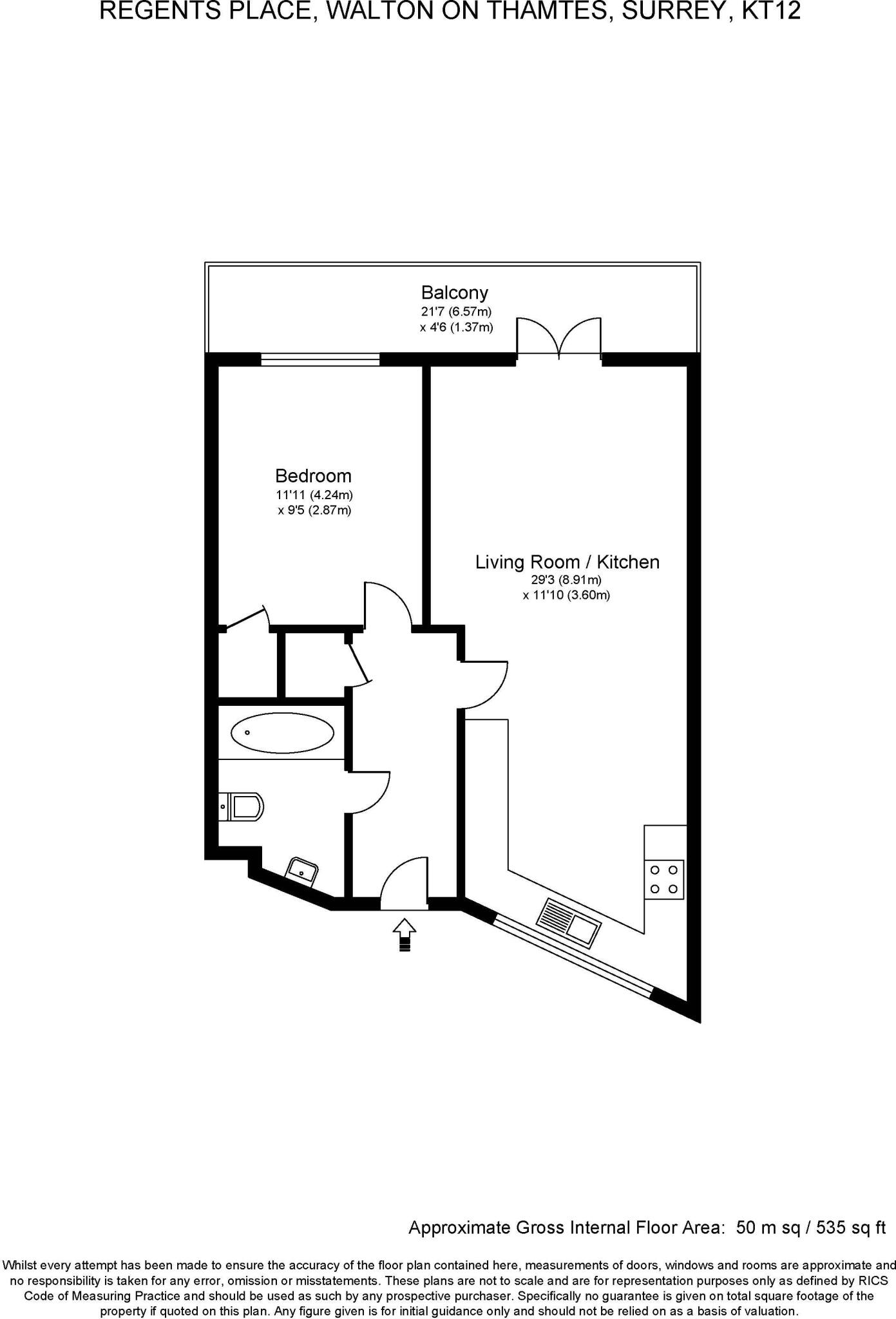 A modern one-bedroom flat in Walton-On-Thames, Surrey. The property is in a good location, close to transportation and schools. The price is reasonable for the area.