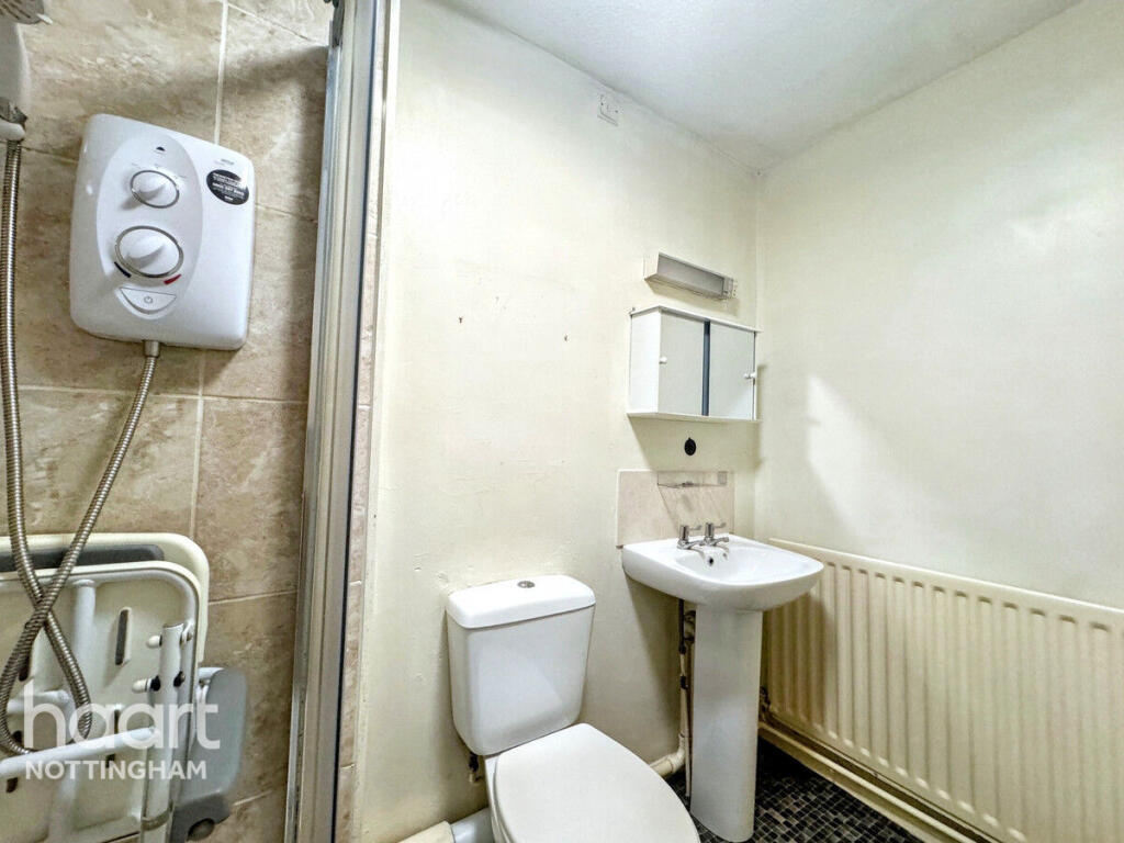 A two-bedroom terraced house in The Meadows, Nottingham. It is located close to schools and transport links. The property has a garden. The internal photos suggest that the property could benefit from some modernisation.