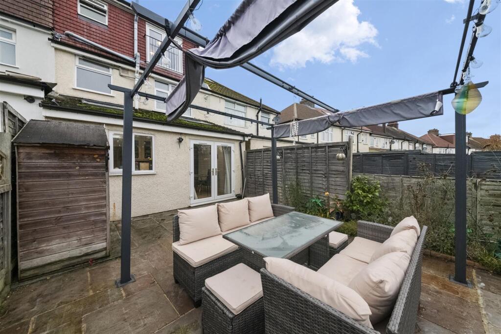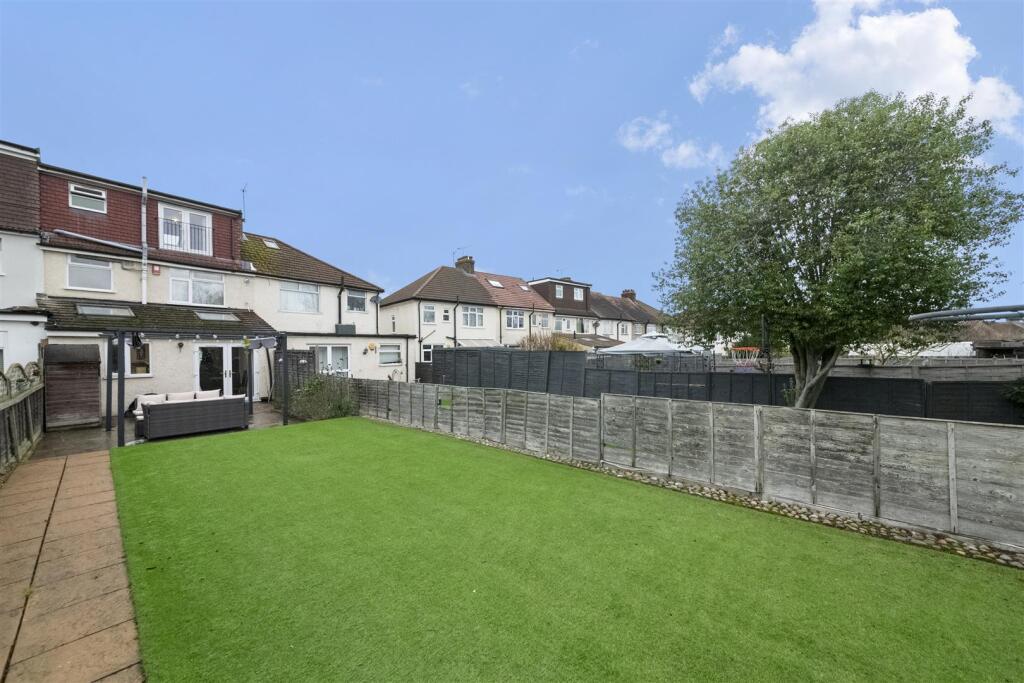 This is a 4-bedroom terraced house in Hillingdon East. The property has a modern interior, particularly in the kitchen and living areas, but the bathrooms could use updating. It features a good-sized garden with both lawn and patio areas. While the location offers proximity to good schools, transportation links are not as convenient. The asking price of £625,000 appears high compared to the average price in the area and recent sales of similar properties on the same street.