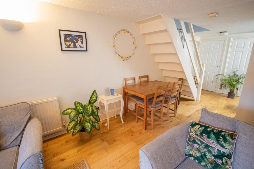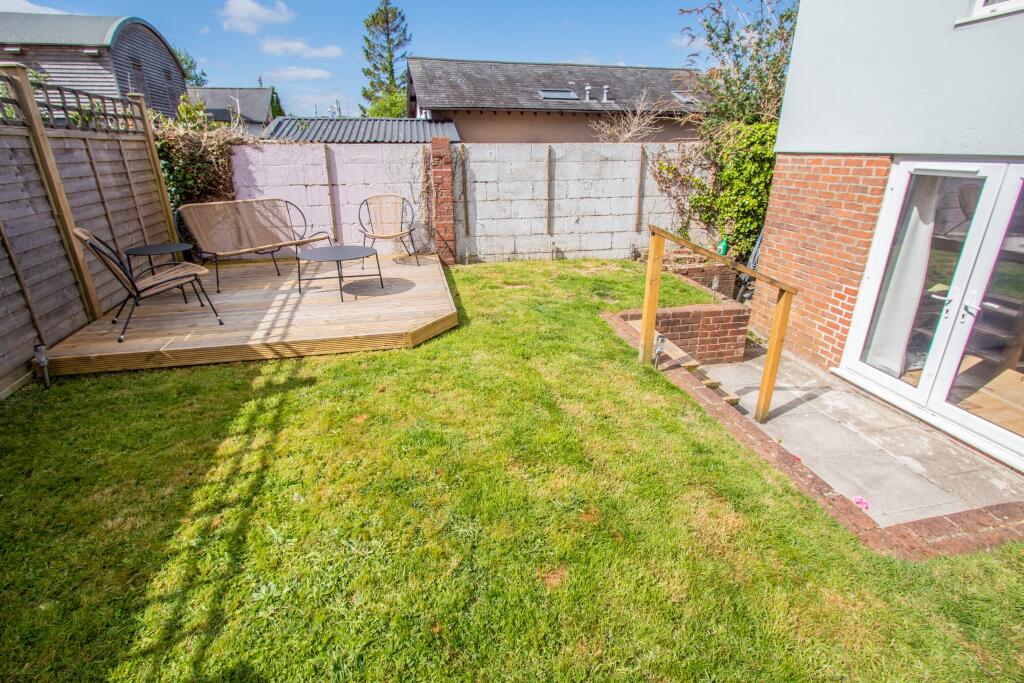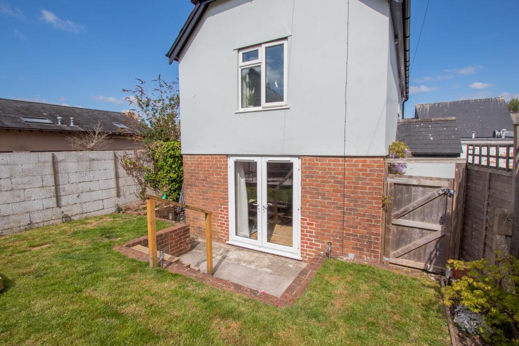 Rare opportunity to acquire a detached house tucked away off the High Street, garden and parking.