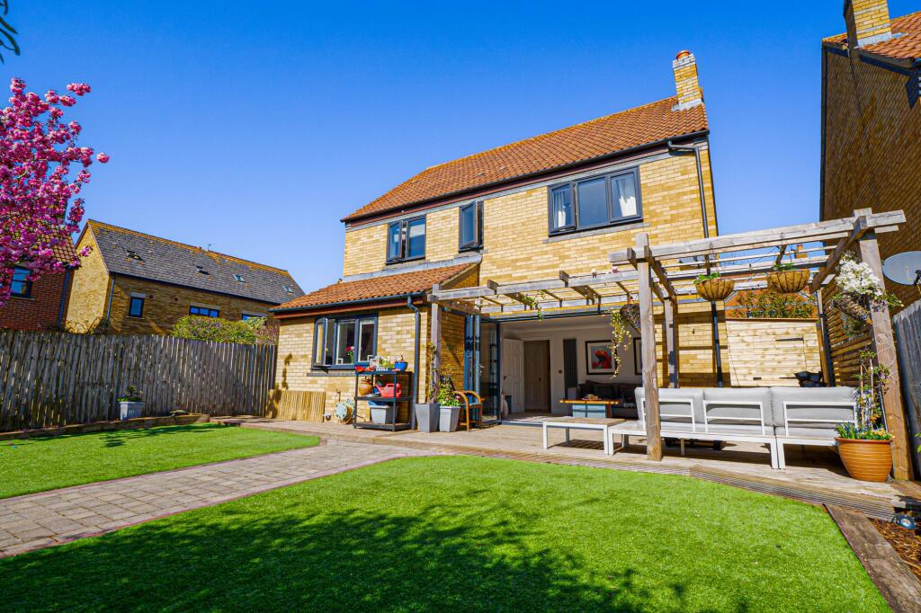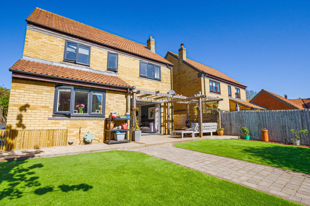 Luxurious 4 bed detached house in cul-de-sac. Boasts 3 receptions, garage, and driveway. Stylish kitchen with Corian worktops, sanctuary bathroom with TV. Landscaped garden with patio and pergola. Under-floor heating. Perfect blend of luxury, comfort, and convenience.
