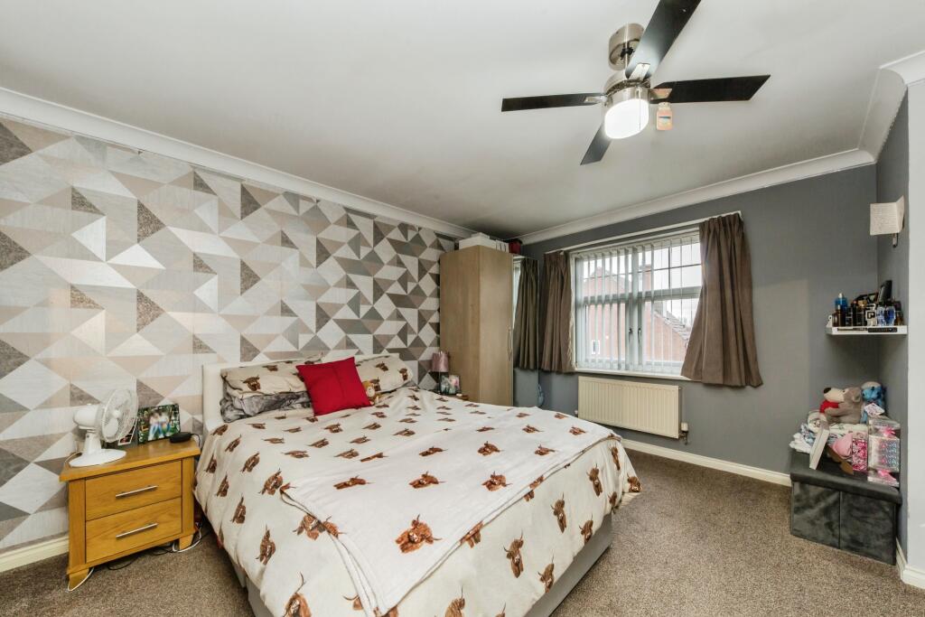 This five-bedroom, two-bathroom detached house in Barnato Close, Crewe offers spacious accommodation across three floors. The property appears to be well-maintained and benefits from modern fixtures and fittings. Images reveal a modern kitchen, a large dining area and living spaces that appear comfortable and well-decorated. The inclusion of five bedrooms suggests that this could be an ideal home for a family. The rear garden is an additional benefit, although the size is unclear from the provided information.