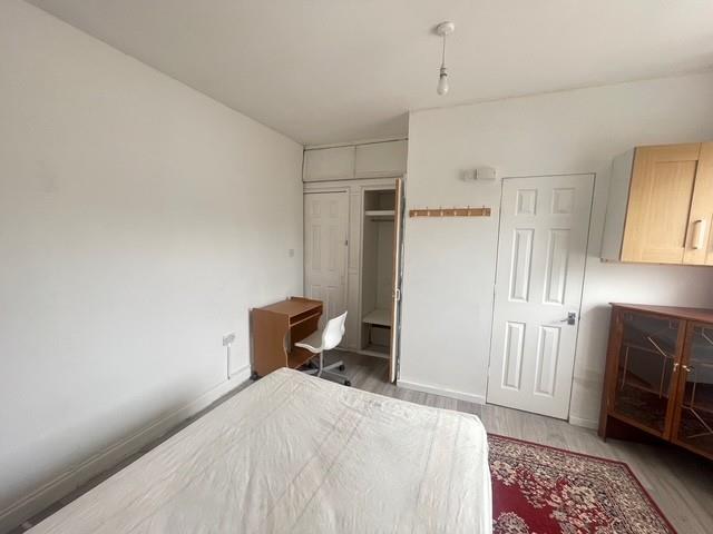 Furnished studio room featuring a double bed, desk, and wardrobe. The room includes cooking facilities, an under-counter fridge freezer, sink, and a private en suite bathroom. Off-street parking space is also included. Additional £100 for all bills.