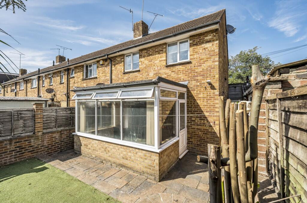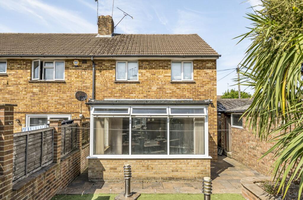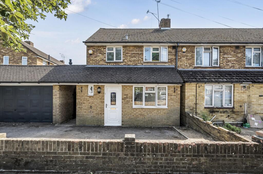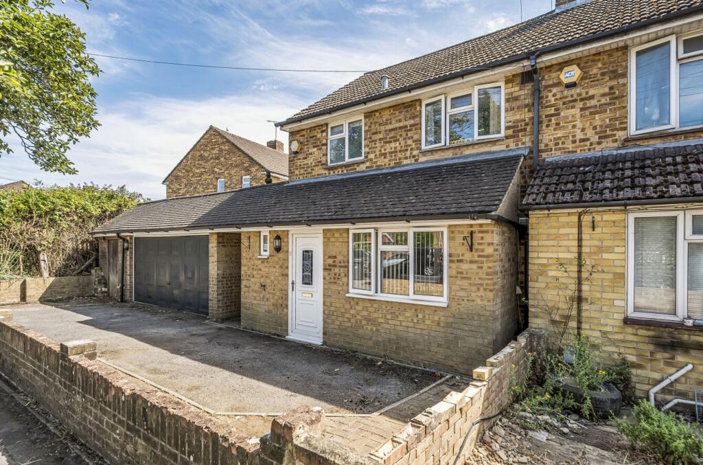 SPACIOUS semi-detached house with 2 bedrooms, DOUBLE GARAGE, fitted kitchen, cloakroom, low-maintenance garden. Great potential for modernisation and extension. Ample parking space with drive and DOUBLE GARAGE. Ideal for creating a personalised living space. NO CHAIN