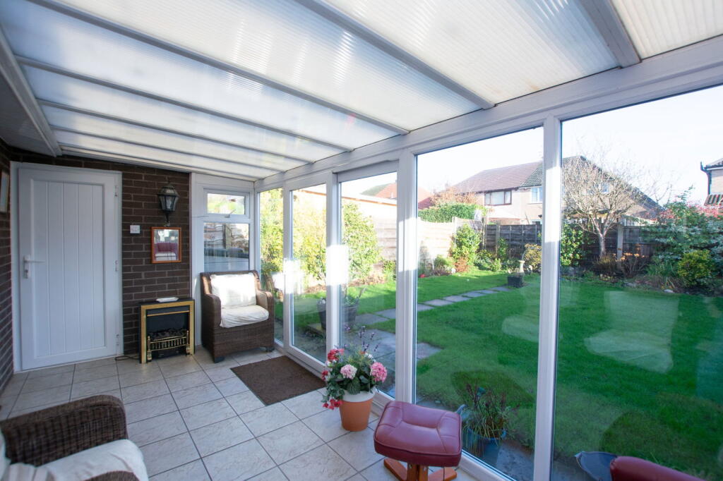 This is a two-bedroom semi-detached bungalow in Astley, Tyldesley. It features a well-maintained garden, a conservatory, and a garage. The property is located within a residential area, with convenient access to local schools and transportation links. While the property is in reasonable condition, some areas could benefit from modernisation. The asking price is £239,950, which seems reasonable given the property’s features and location.