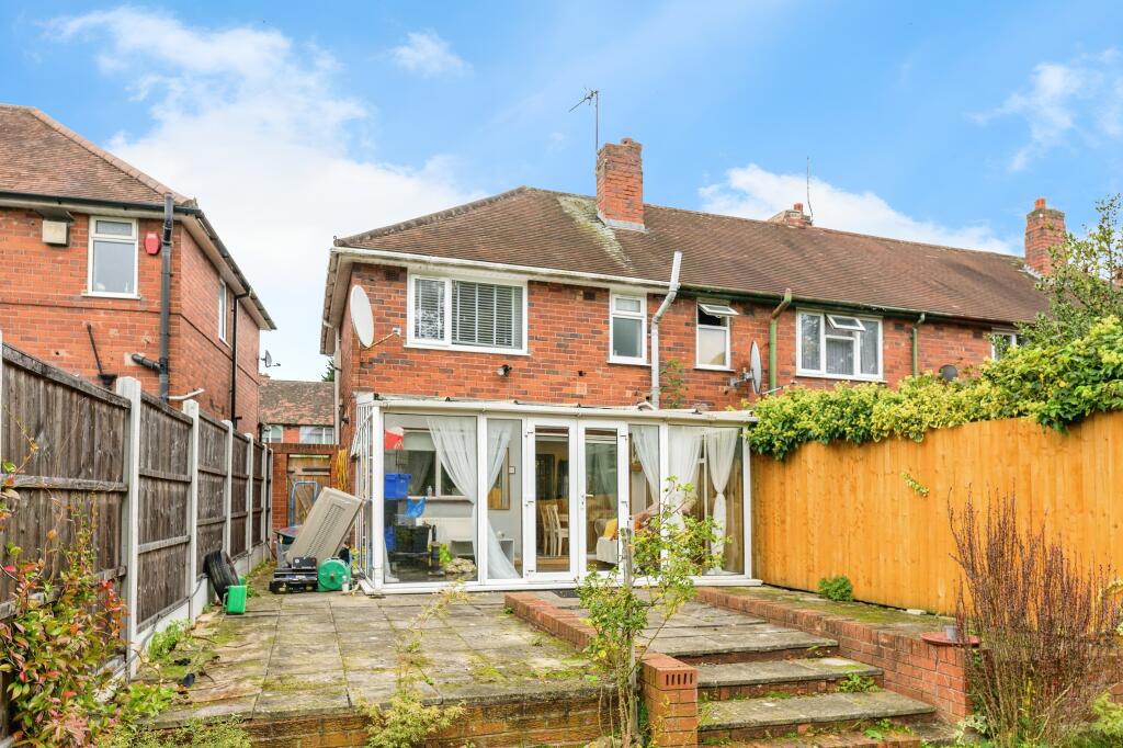 Yopa presents this chain-free 3-bedroom end-terrace on Wingfield Road, Great Barr (B42). Features include a driveway for two cars, spacious lounge, large kitchen with conservatory, two double bedrooms, good-sized garden, and scope to update or extend.