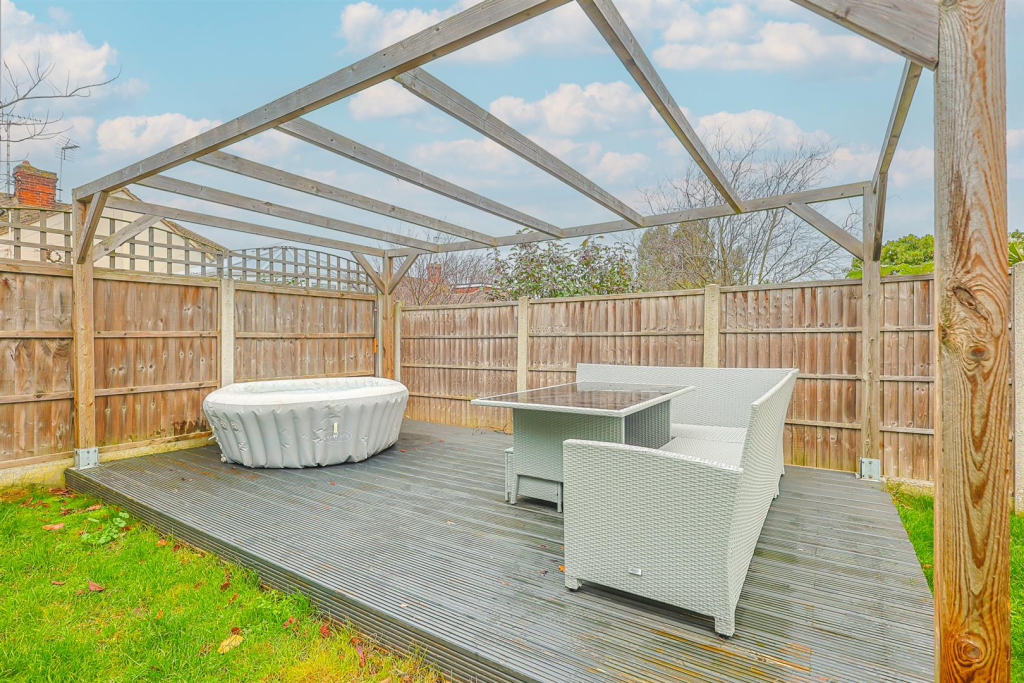 This is a detached property in Hockley, Essex, featuring three bedrooms and two bathrooms. The interior of the house is modern and well-presented, with a contemporary kitchen and updated bathrooms. The property benefits from a good-sized garden with a decked area and pergola, offering ample outdoor space. The location is convenient, with Hockley train station and several schools nearby. While the list price is slightly above the average for the area, the property’s detached status and overall condition justify the price.
