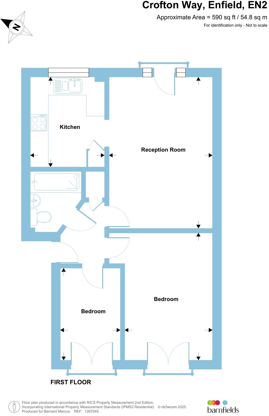 First floor purpose built flat in this popular turning just off Enfield's Ridgeway. Two bedrooms, spacious lounge, modern kitchen, modern bathroom, own garage, long lease and more. Sole agents. Chain free.