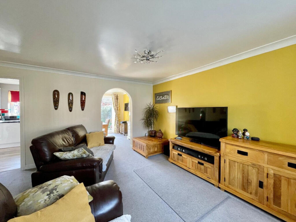 An extended four bedroom detached house in a desirable cul-de-sac with great family living space and a sunny South-East facing garden with excellent koi pond