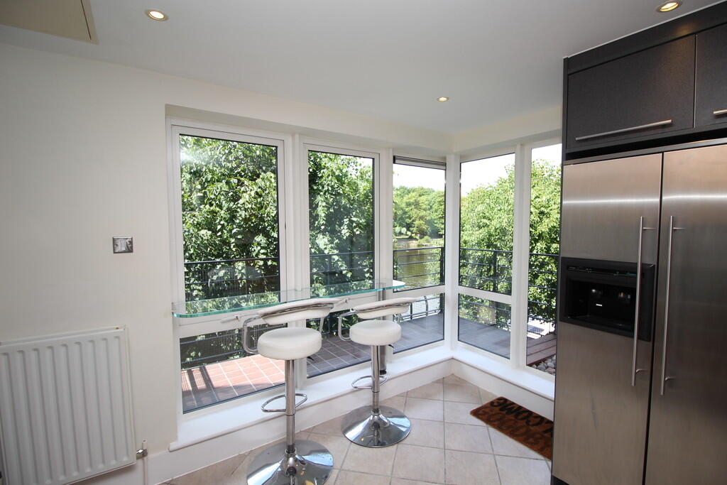 This is a two-bedroom apartment in Charter Quay, Kingston Upon Thames. The property is in a good location, close to transportation, schools, and local amenities. The apartment has a large balcony/terrace with river views. While the apartment is in generally good condition, some areas could benefit from modernisation. The asking price of £900,000 appears slightly high compared to similar properties in the area.