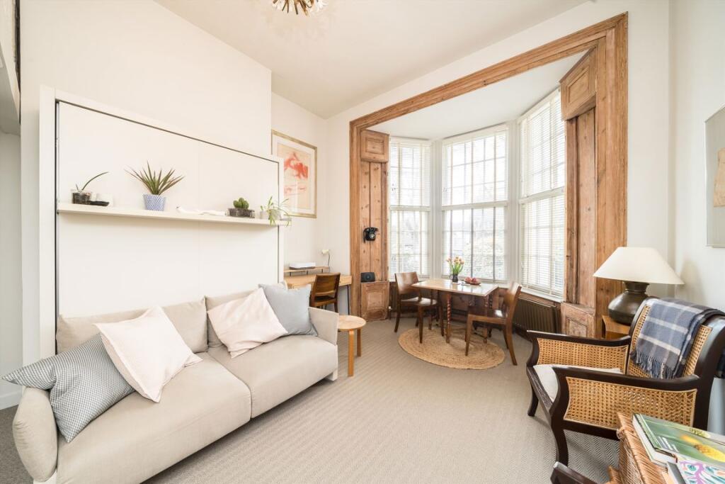 Presented in excellent order through out, this smart raised ground floor period conversion. It Incudes a bright open plan reception room with mezzanine bedroom, separate kitchen, storage and a bathroom. The property includes a share of the freehold and will be sold chain free.