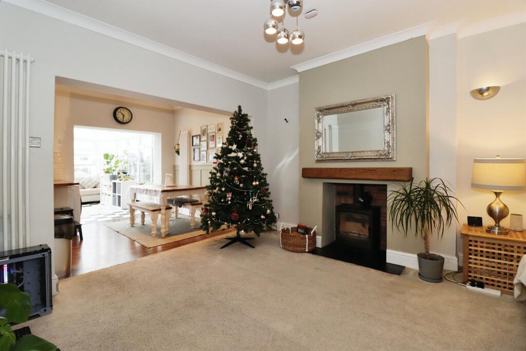 A 1930s double bay fronted mid-terraced house comprising entrance hallway, lounge/diner, kitchen breakfast room, conservatory, three bedrooms and family bathroom. Benefiting from having driveway parking for two cars as well as a DOUBLE GARAGE to the rear.