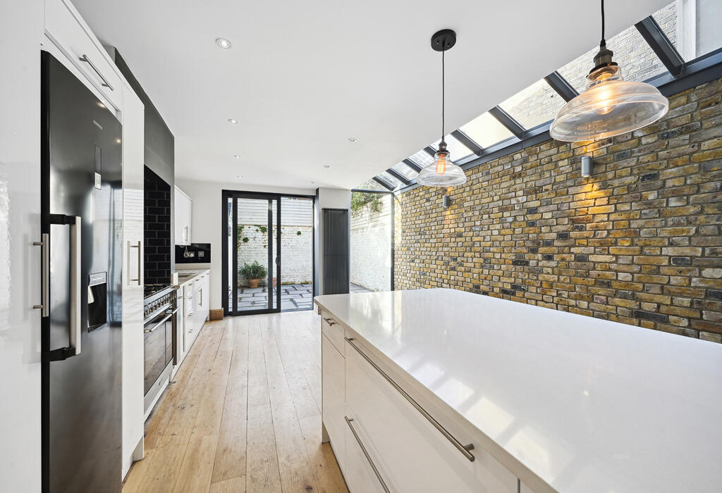 This five-bedroom, two-bathroom terraced house located on Fabian Road in Fulham Broadway, London, presents a compelling offering within a sought-after area. The property’s key strengths lie in its location, within easy walking distance of Fulham Broadway underground station and a variety of amenities. The modern kitchen extension, with its light-filled design and access to the garden, is a significant highlight. The overall presentation is contemporary and well-maintained, although the precise square footage of both the house and plot is not provided. The images show some rooms are currently unfurnished, implying a degree of flexibility for potential buyers. The garden, while present, appears relatively small in comparison to others in the area. The price is competitive within the Fulham Broadway market, but a full square footage for the plot and house would enable a more complete and accurate comparative pricing analysis. Potential buyers should carefully assess the garden size relative to their expectations and conduct thorough independent valuation checks before committing to a purchase.