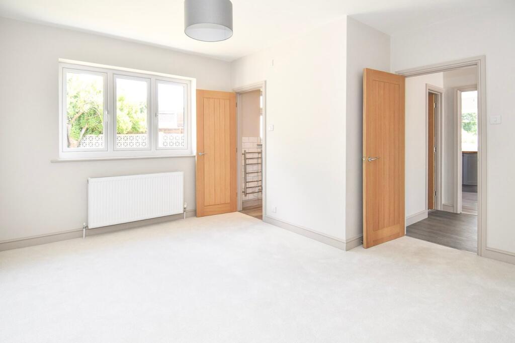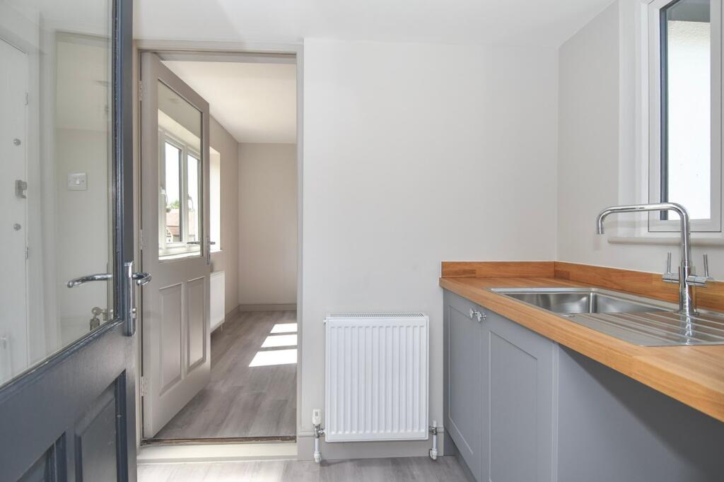 Contemporary, all shiny and new, refurbished and reconfigured, gorgeous two-bedroom village bungalow with ensuite shower rooms, open-plan kitchen/dining room, separate sitting room, private rear garden, garage and parking.