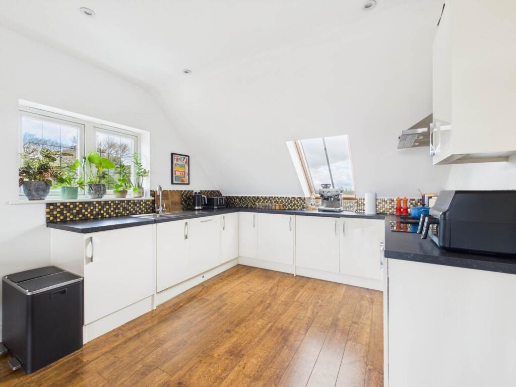 The property is a 1-bedroom flat located on High Street in Wing, Buckinghamshire. The list price is £215,000, and the property has 529.69 sqft of living space. The flat appears to be in excellent condition, with a modern kitchen and bathroom. The images show a well-maintained and stylish interior. The property benefits from views over the surrounding countryside. There is no evidence of any need for renovation. The location is good, with a number of schools and transportation options within a reasonable distance. The proximity to Aylesbury Vale Parkway and Aylesbury train stations provides convenient access to other areas. The presence of several well-regarded schools nearby is a positive factor for families. The property does not appear to have any outdoor space. The plot size is listed as 0.00 sqft. Considering the average price per sqft in the area (£426.00), and the average house price (£585,858), the list price of £215,000 for this 529.69 sqft flat seems reasonable, particularly given its modern condition and desirable location. However, the lack of outdoor space might affect some buyers. Nearby comparable properties are significantly higher in price, suggesting this property is competitively priced.