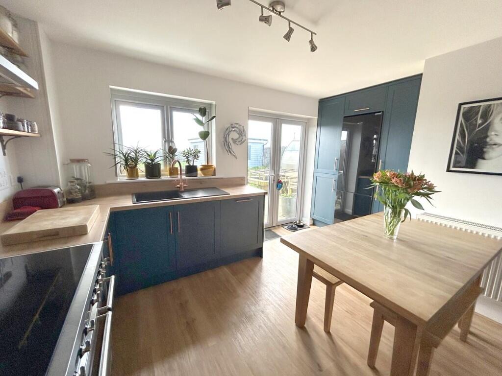 This three-bedroom property in Breage, Cornwall is listed at £400,000. The property is presented in excellent condition and benefits from a modern, well-maintained interior and exterior. The photos show a recently renovated home with a contemporary design. There is a good-sized garden with additional outbuildings, including a substantial garden room/studio. The location is within easy reach of the village of Breage and benefits from being relatively close to several primary schools. However, the average house price in the area is significantly higher at £468,178, and the average price per square foot is £235 compared to this property’s price per sqft of approximately £344. While the property itself is in great condition and has a desirable garden, its list price may be considered slightly high relative to the local market average. More information on comparable properties would be needed to make a definitive assessment of the price.