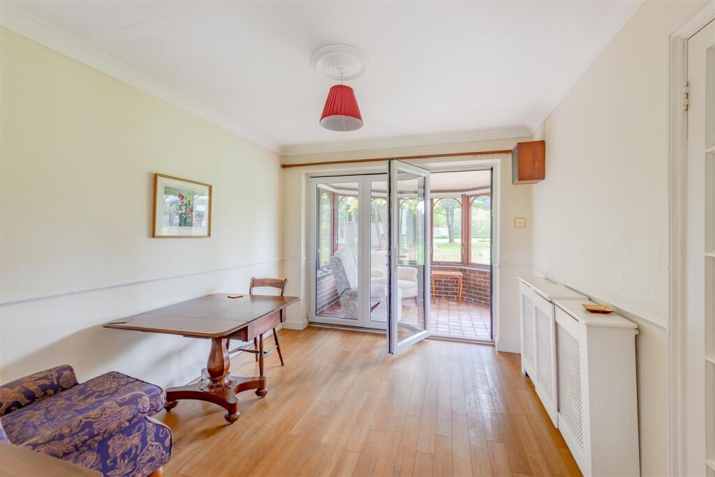 This is a detached bungalow in Horsham, West Sussex, featuring three bedrooms and two bathrooms. The property offers a spacious 1,533 sqft of living space and includes a large garden. While the interior is traditionally styled and could benefit from some modernisation, the property appears to be well-maintained. Its location offers convenient access to schools and transportation, making it suitable for families. The asking price of £650,000 seems reasonable considering the size, location, and garden.