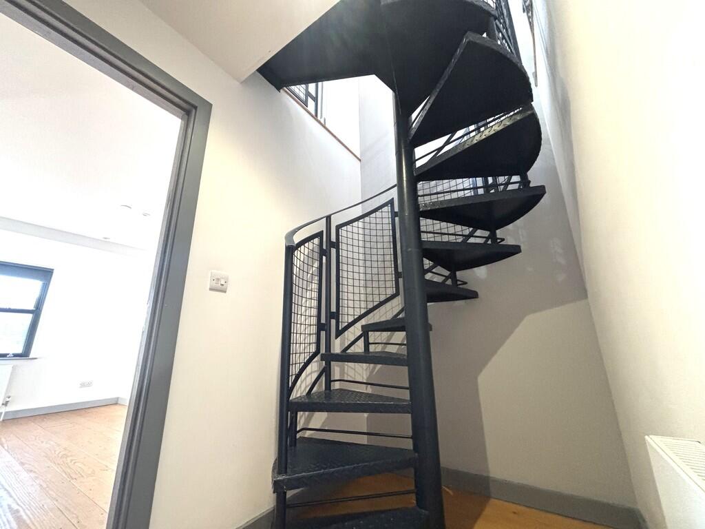 Based on the images provided, the property appears to be in excellent condition and has been recently renovated to a high standard. The modern kitchen and bathrooms are well-equipped and stylish. The use of wood flooring throughout adds to the overall aesthetic appeal. The property also features a unique spiral staircase, adding a touch of character. There is no evidence of any repairs or renovations required.
