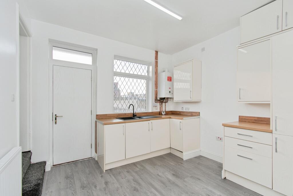 This is a 3-bedroom terraced bungalow located on Victoria Street, Featherstone. The property is listed for £140,000 and has a floor area of 699.65 sqft. The property is located close to local schools and Featherstone train station. The property appears to be in reasonable condition, with a modern bathroom and kitchen. However, it may benefit from some cosmetic updates in certain areas. The property has a small garden, which is a positive feature. However, the garden is mainly gravelled. Overall, this property represents a good opportunity for first-time buyers or investors looking for a property in a convenient location.