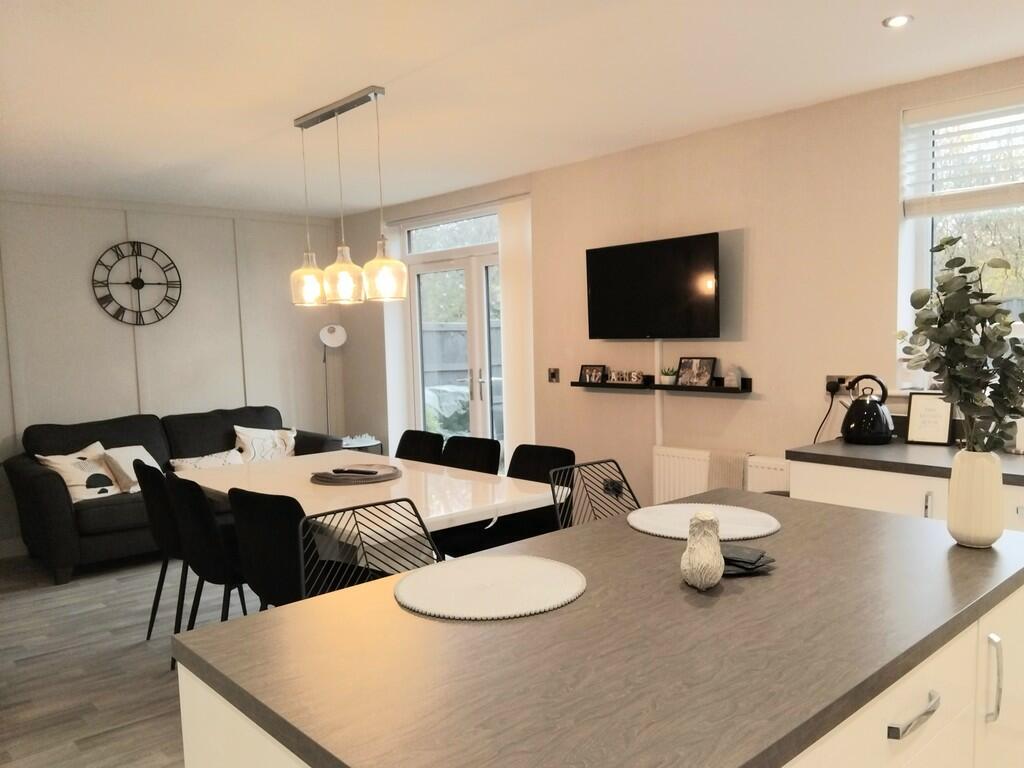 This four-bedroom, two-bathroom detached house located on Proudman Way in Winsford, Cheshire offers a modern and well-maintained living space. The property benefits from a stylish, contemporary interior with an open-plan kitchen-diner that is perfect for modern family living. The photos show a high standard of recent renovations or new construction, demonstrating excellent quality finishes and fittings.