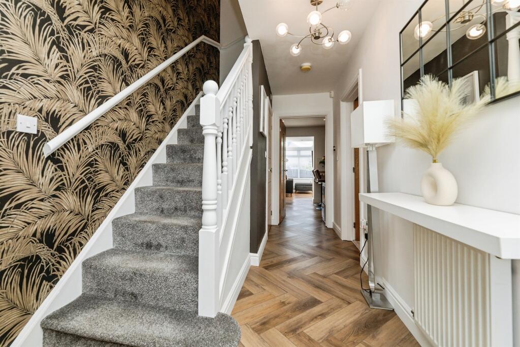 A detached property in Woolley Grange, Barnsley, West Yorkshire. The property is well-located, close to schools and transportation. The house is in good condition, with modern interior design. It features a garden and a garage. The price per sqft is lower than the area average.