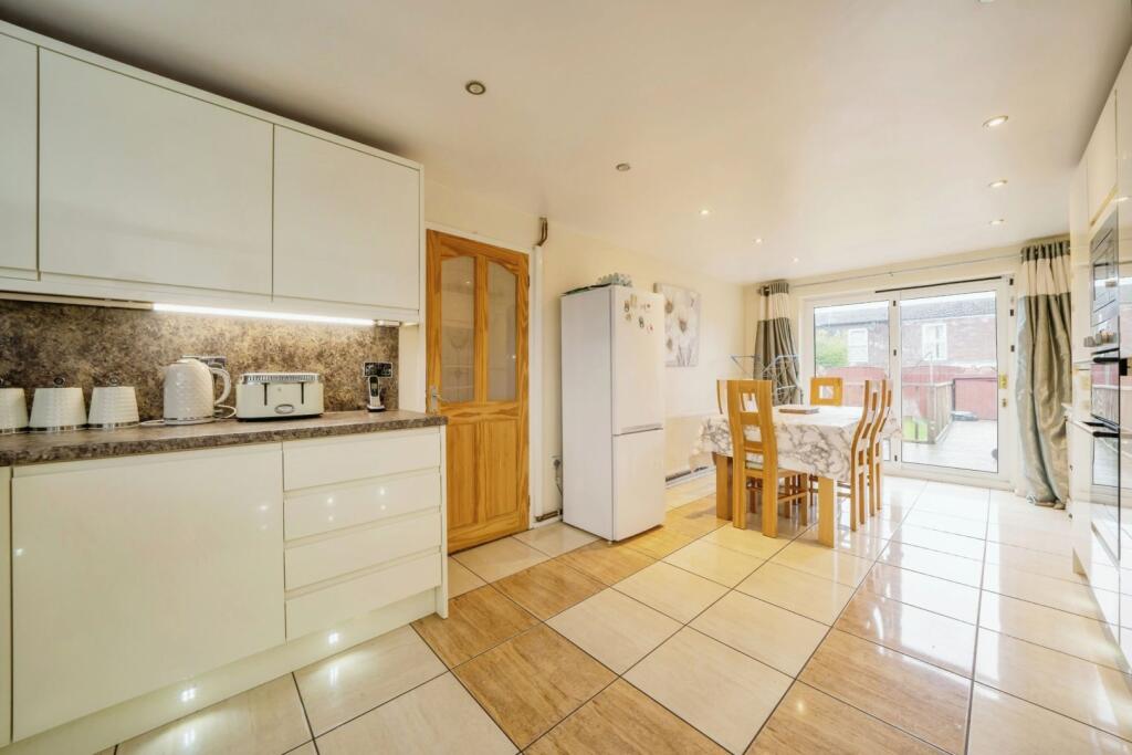 This is a 4-bedroom terraced house located on Sparrowhawk Close in Halton Lea, Runcorn. The property is listed for £200,000. While the kitchen has been modernised, some rooms require renovation. The property benefits from a garden with a decked area. Several schools are located within a 1km radius, and Runcorn East train station is 2.25km away. The price appears reasonable given the condition and location.