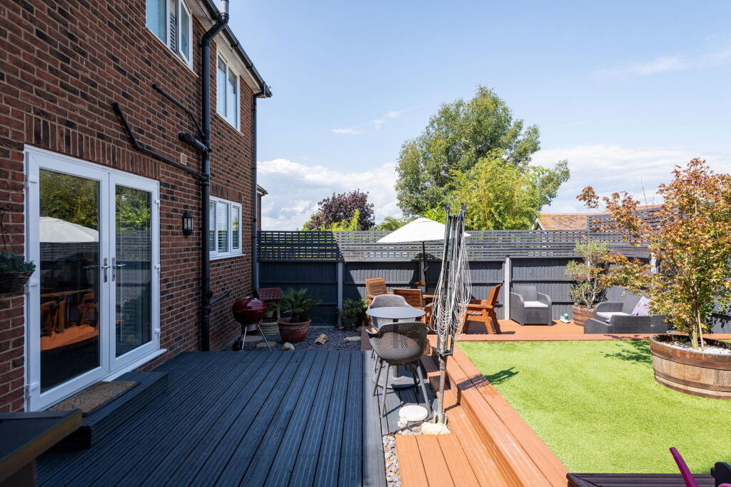 This property is a 4-bedroom, 2-bathroom detached house located in Minster on Sea, Kent. The location benefits from being relatively close to several primary schools with good Ofsted ratings, and is within reasonable distance of Sheerness-on-Sea train station. The property itself appears to be in excellent condition, with modern fixtures and fittings throughout. Images show a well-maintained garden with decking and artificial turf. The list price of £425,000 is slightly above the average price for the area (£378,193), but given the property’s condition, size (973.06 sqft), and the inclusion of a garden, it could be considered reasonable. However, the lack of plot size data in square feet prevents a more precise evaluation of the land value.