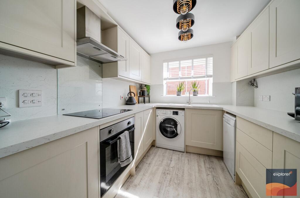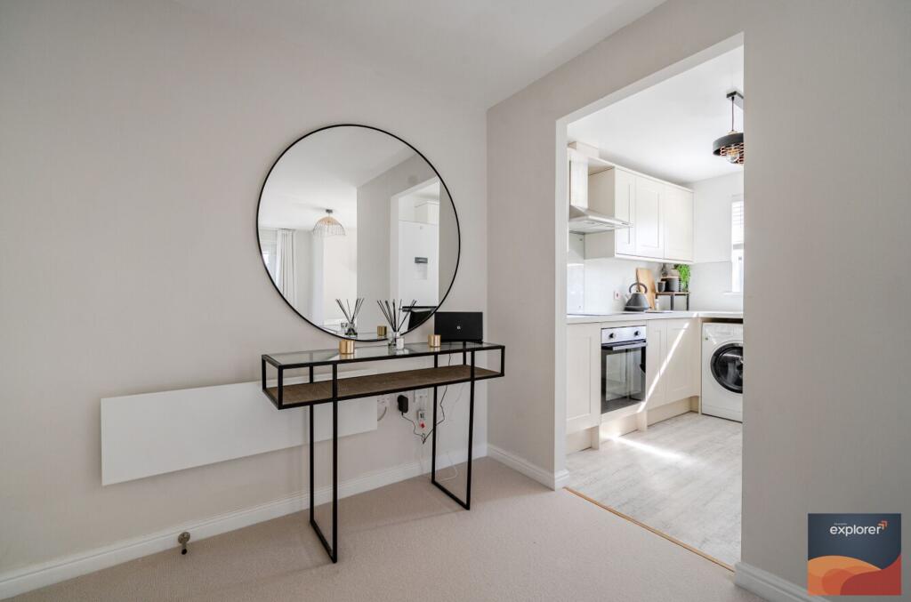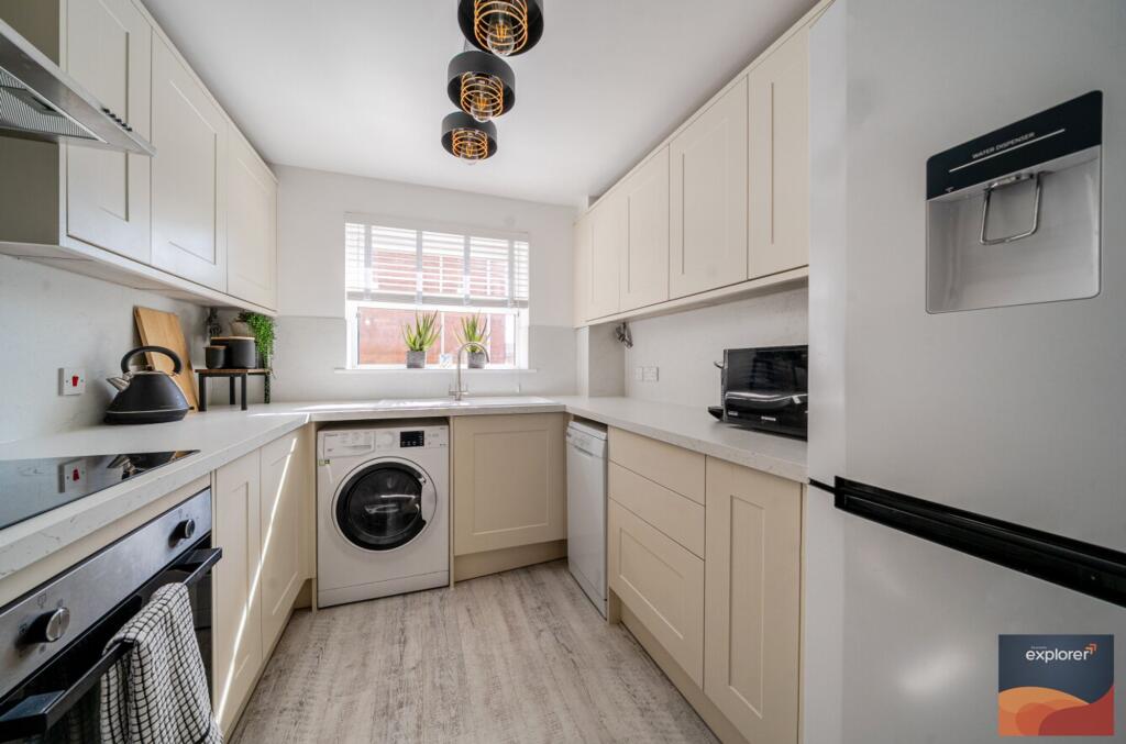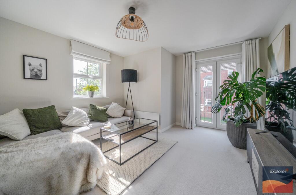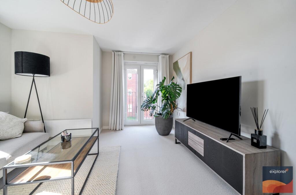 EXPLORER - This well-presented property offers two double bedrooms, with the principle bedroom featuring an en-suite and a feature Juliette balcony. The spacious open-plan reception room also enjoys access to a Juliette balcony, creating a bright and airy living space, while the well-appointed ki...