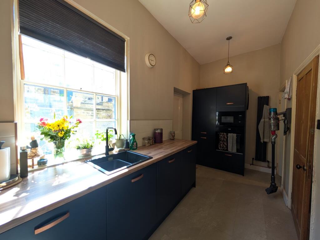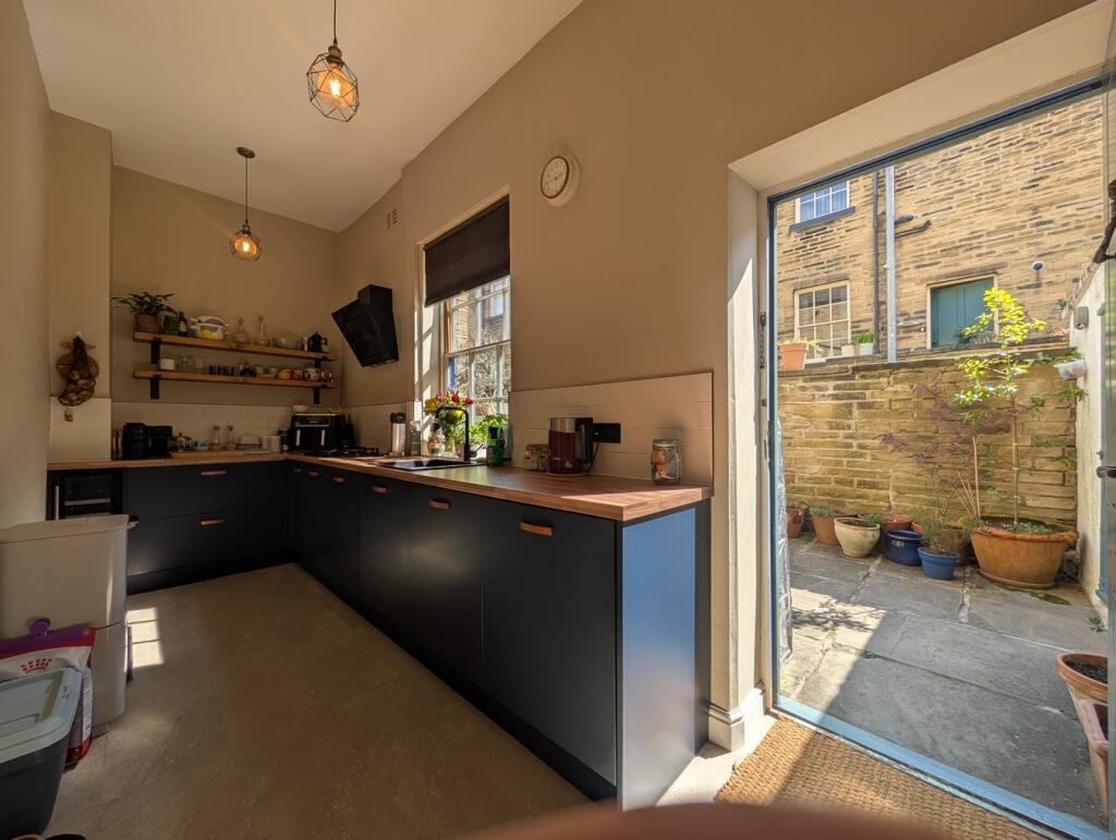 This three-bedroom terraced house in Saltaire, Bradford, is listed at £260,000. The property boasts a recently renovated kitchen and bathroom, as seen in the provided images. The interior is presented in a modern style, with a tasteful blend of contemporary and traditional features. The inclusion of a wood-burning stove adds a cozy and charming touch. A small, manageable patio garden is accessible from the kitchen, offering a private outdoor space. Saltaire is known for its attractive location and proximity to amenities, including excellent schools and transportation links. The average house price in the area is £249,736, with an average price per square foot of £232. This property is slightly above average in price, but its modern renovations and desirable location may justify the listing price.