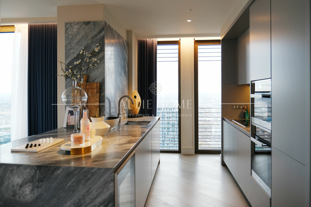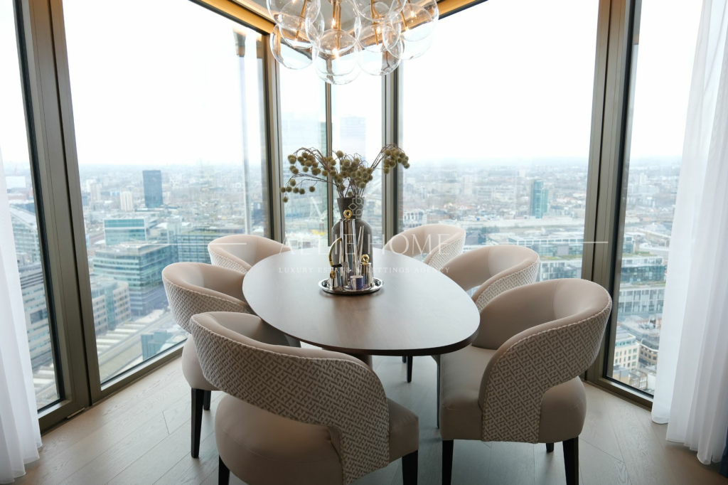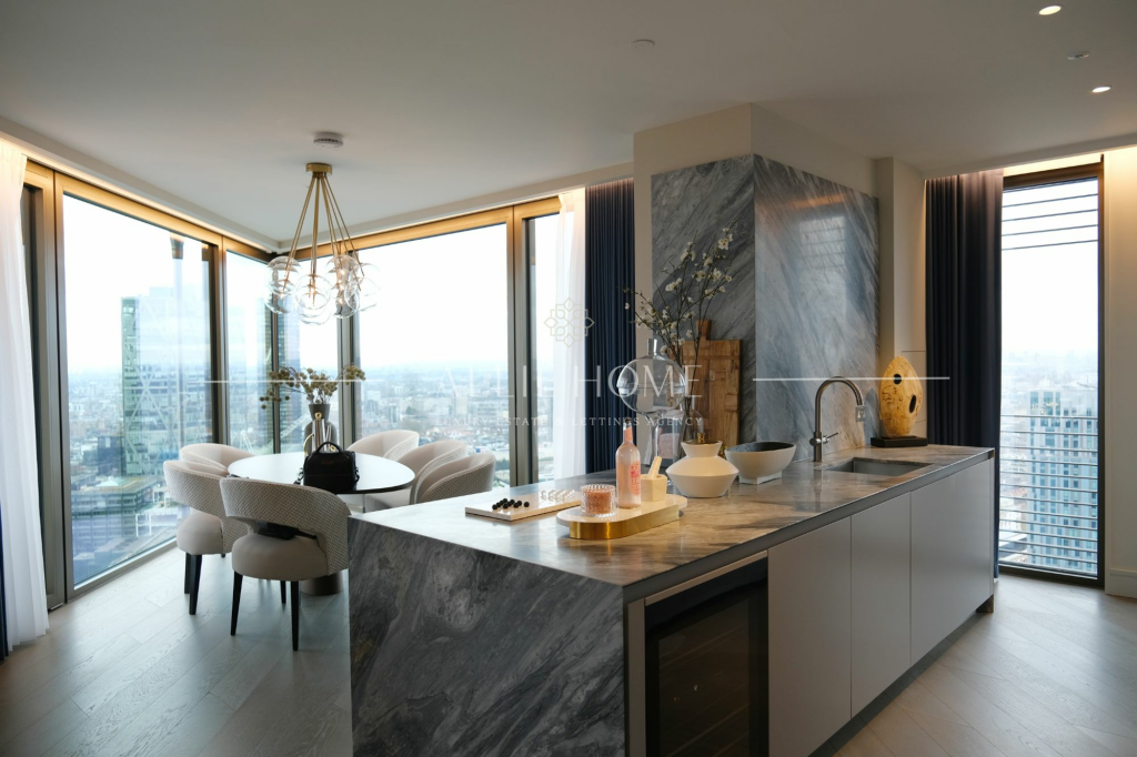 Luxury 2-bed, 2-bath apartment in City of London with Gherkin views. Open-plan kitchen, high-end finishes, amenities, and prime location near Liverpool St. Station. Ideal urban home.