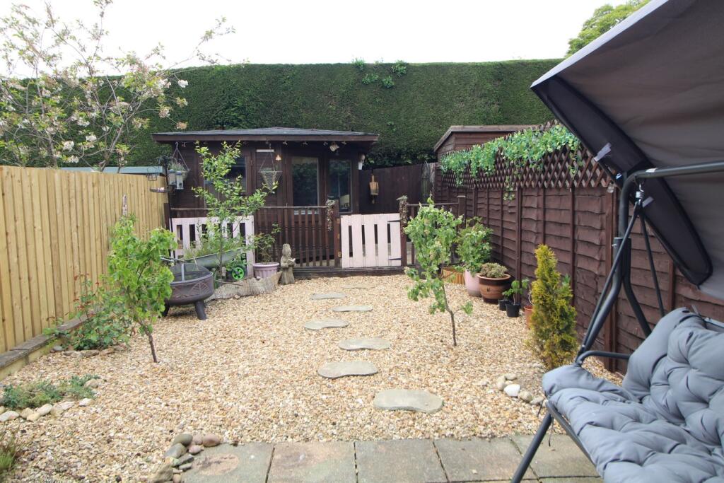 ** MODERN EXTENDED TOWN HOUSE, KITCHEN DINER, THREE BEDROOMS, LOW MAINTENANCE REAR GARDEN WITH SUMMERHOUSE, FRONT GARDEN, ALLOCATED PARKING, EPC RATING C **