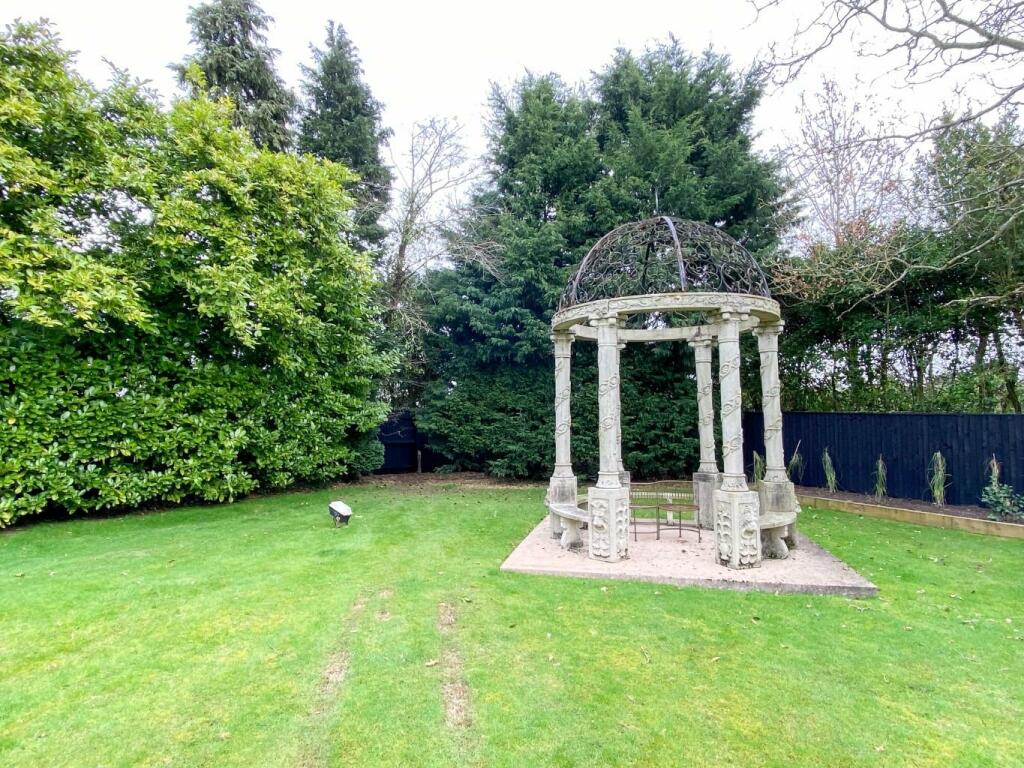 This property is located in Earlswood, Solihull, and is described as being a short distance from Earlswood Lakes. The area has a mix of property types and price points, with some properties exceeding \£1 million. The property itself is a large detached house with six bedrooms and four bathrooms, situated on a sizable plot with extensive gardens. Based on the photos, the property appears to be in good condition, with modern updates and well-maintained landscaping. The large garden features a gazebo, fire pit, and pond. The interior photos show a spacious and updated living area, kitchen, and bedrooms. The list price is \£1,100,000. Given the size, condition, location, and amenities, the price appears to be in line with other high-value properties in the area.