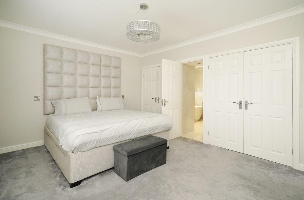This detached property on Redmires Road, Fulwood, Sheffield, presents a modern and well-maintained family home. The house features four bedrooms and four bathrooms, a newly fitted kitchen, and landscaped gardens. The location is desirable, with access to good schools and transportation links. While the price is high for the area, the property’s condition and features justify the valuation.