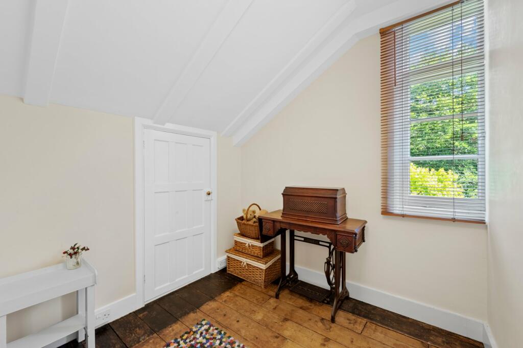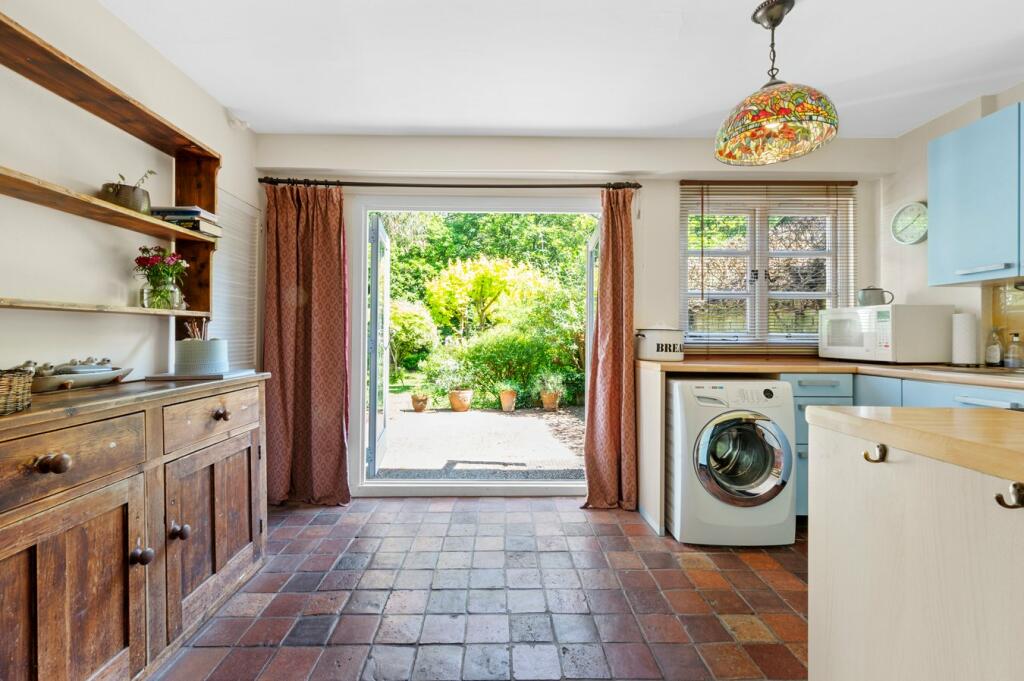 This charming 3-bedroom, 1-bathroom property situated on Ellesmere Road in Weybridge, KT13 0HL, presents a compelling opportunity for buyers seeking a characterful home in a highly desirable area. The property is described as a Tarrant-built house dating back to approximately 1920, and its exterior showcases a unique dark wood cladding. The surrounding landscape is lush and green, indicating a mature garden setting. Internally, the property seems well-maintained but displays features indicative of its age, particularly in the kitchen and bathroom. The kitchen offers a dated, but functional, space and shows direct access to the garden. The images present a cozy and inviting living area with an exposed brick fireplace; adding character to the space. The bedrooms present varying levels of updated furnishings. While lacking precise square footage information, the house appears to be of average size for the region. Its sizeable garden is a distinct advantage, offering ample space for outdoor recreation and relaxation. The location, close to St George’s Hill Estate and Weybridge town centre, provides proximity to excellent amenities and transport links. Access to reputable schools is another factor that contributes to the desirability of the property. The pricing, at £925,000, requires further consideration given the lack of precise internal size data and the potential need for updating or refurbishment of specific areas. Overall, this property is a potential purchase that balances character with location, while consideration should be given to its maintenance and update requirements.