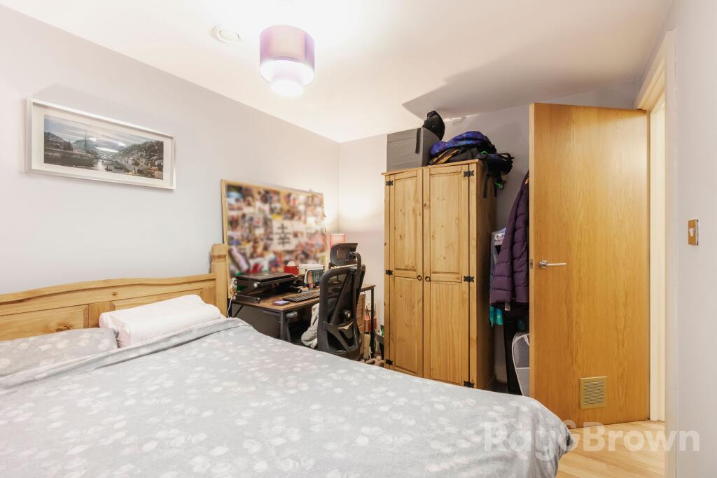 Conveniently located Two Bedroom apartment in the Cube development. This large and open plan apartment has a large lounge/diner/kitchen area with stunning city views, two largen bedrooms, fully fitted bathroom and an addition room currently used for storage. The communal area includes a lift.