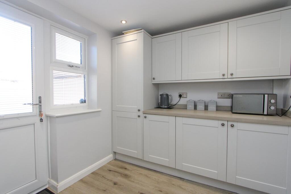 This property is a 3 bedroom detached house located in Wickwar, Gloucestershire. It has 891.14 sqft of living space and a 1,168.96 sqft plot. The property benefits from a modern kitchen and conservatory and appears to be well-maintained. The nearby area has an average house price of £519,902 and an average price per sqft of £395. Several nearby properties on Inglestone Road are listed at prices ranging from £260,000 to £499,950. The list price of £389,950 for this property appears competitive given the size and condition of the property, though more information on the specific condition of comparable properties would be needed for a definitive assessment. The property is within a reasonable distance of Alexander Hosea Primary School (0.24 km), which has a good Ofsted rating. Other schools are within a 5km radius. Yate train station is 7km away offering a transport link. The property also has a garden. Based on the images provided, the property appears to be in good condition and has a modern feel. The kitchen has been recently updated and the property has a conservatory and a garden. There is a garage.