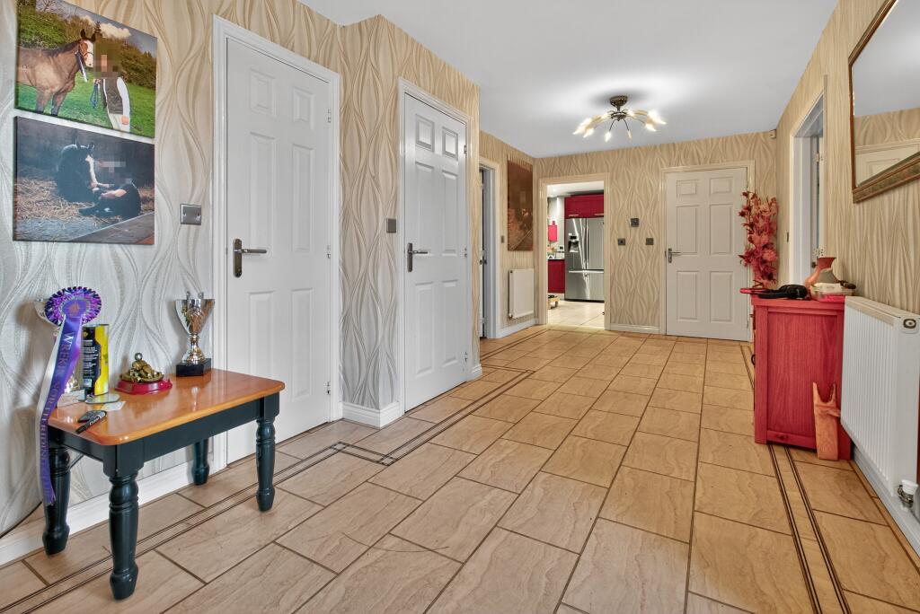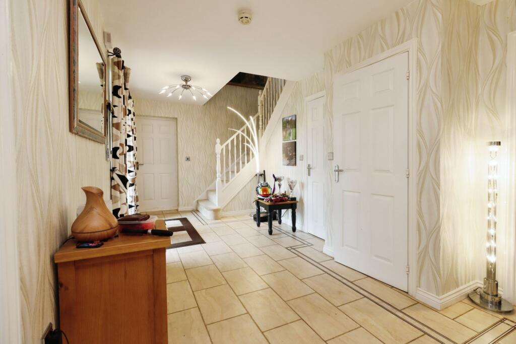 This is a large, detached property in Bratton, Telford. It has 5 bedrooms and 4 bathrooms, a large kitchen, and a garden. The property is in generally good condition, but some rooms would benefit from modernisation. The property is located close to schools and transport links. The list price seems relatively high compared to other properties in the area.