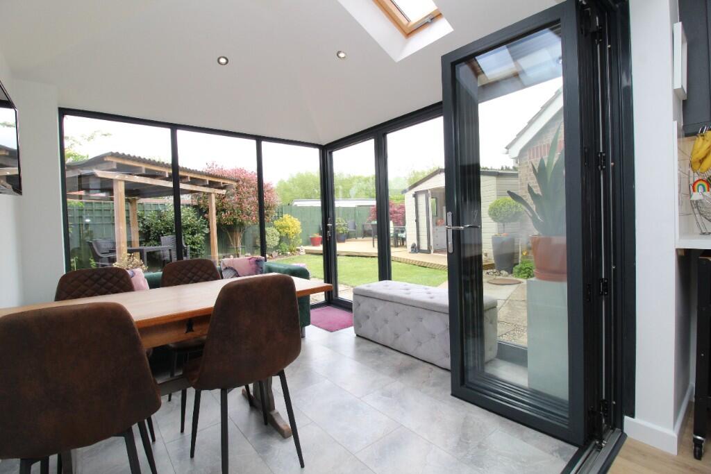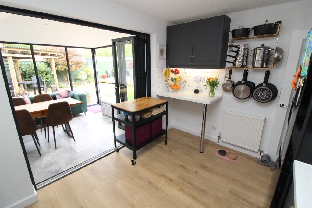 STUNNING CORNER-PLOT HOME WITH A DESIGNER VAULTED EXTENSION, TWO DOUBLE BEDROOMS, LANDSCAPED GARDEN, FULLY POWERED SUMMERHOUSE. IMMACULATELY PRESENTED THROUGHOUT WITH MODERN KITCHEN, BI-FOLD DOORS, SKYLIGHTS, AND DETACHED GARAGE. PEACEFUL CUL-DE-SAC LOCATION CLOSE TO KINGSWOOD & FANTASTIC ROAD LINKS