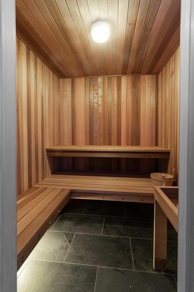 Based on the provided information, the property includes a garage and a sauna.
