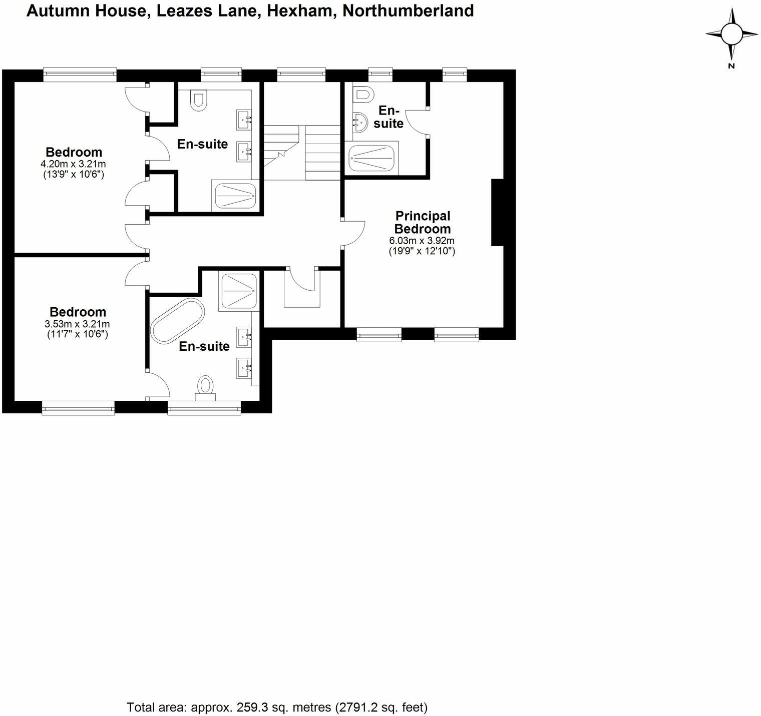 Autumn House is a detached property located in Hexham, Northumberland. The property is listed at £795,000 and has 3 bedrooms and 3 bathrooms. The plot size is approximately 2,791.20 sqft and the house size is 306.76 sqft.