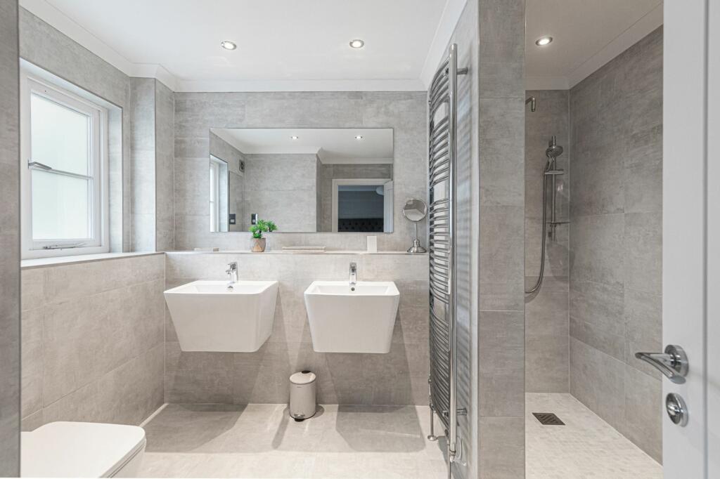 The property appears to be in excellent condition, having undergone a recent high-quality renovation. The interior boasts modern fixtures and fittings, a contemporary kitchen and bathrooms, and a stylish overall design. The images show no visible signs of wear and tear or needing any repairs. The property also benefits from a substantial garden.