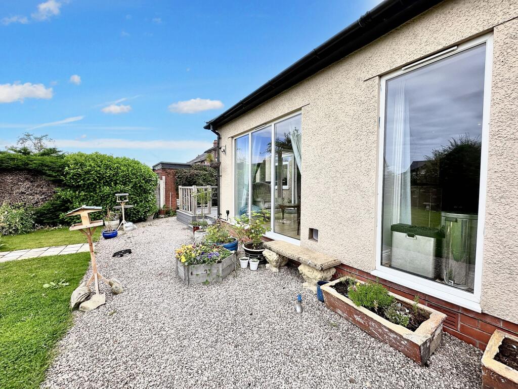 Impressive 2 bed bungalow in Scotby village. Modern & charming with spacious layout. 2 double bedrooms, 2 bathrooms, open plan kitchen, garage, ample parking, and a lush enclosed garden. Close to M6/A69 for commuting ease. Gas heating & double glazing. Perfect peaceful retreat near urban amenities.